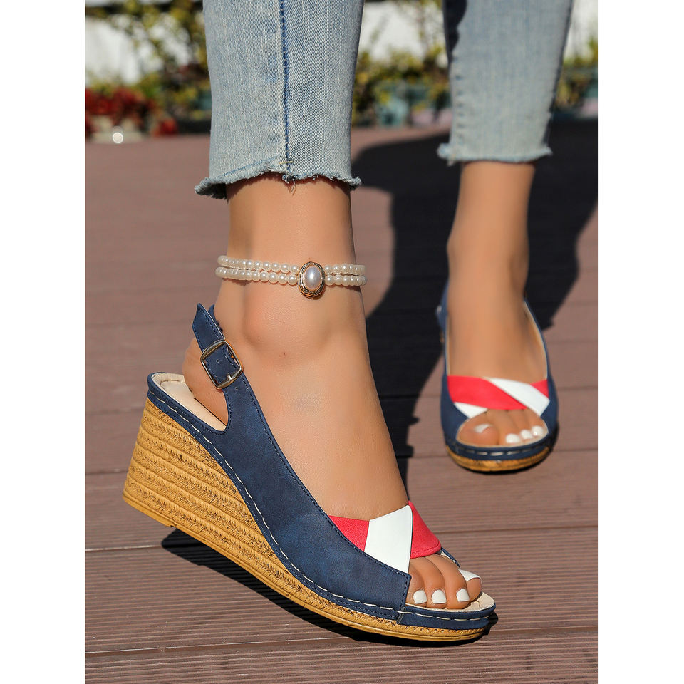 SEASTAR Women's Elegant Casual Ankle Strap Wedge Sandals with Thick Soled Heels Lace-Up Closure for Outdoor Beach Fashion