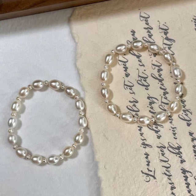 WENCHI Women's Elegant French Freshwater Pearl Bracelet & Bangle with Natural Elastic Rope 30g