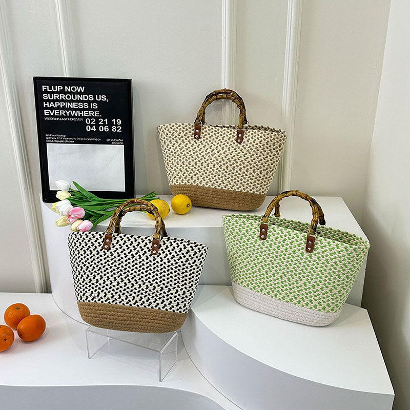 Bamboo Handles Summer Vacation Woven Beach Bag