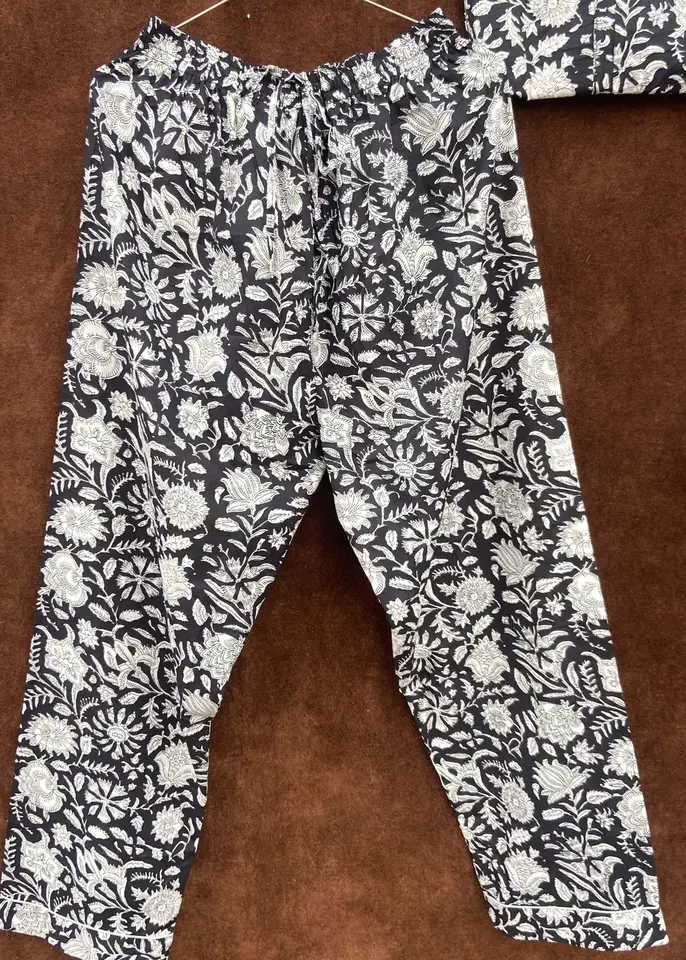 Women's Elegant Ultra Soft Cotton Pajama Set Hand Block Floral Print Light Summer Sleepwear Coat