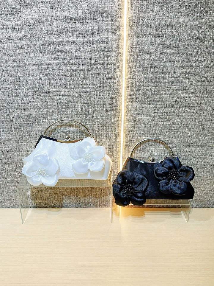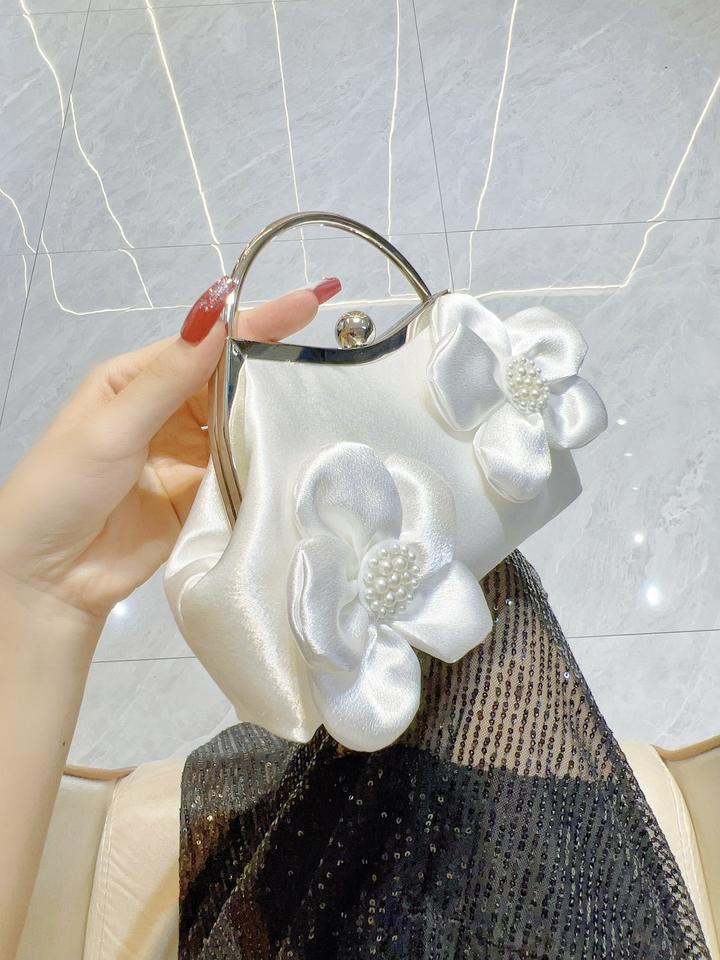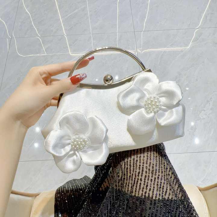 Women's Elegant White Flower Satin Evening Bag Handbags Banquets Weddings Luxury Fashionable Clutch Purse Bag for Women