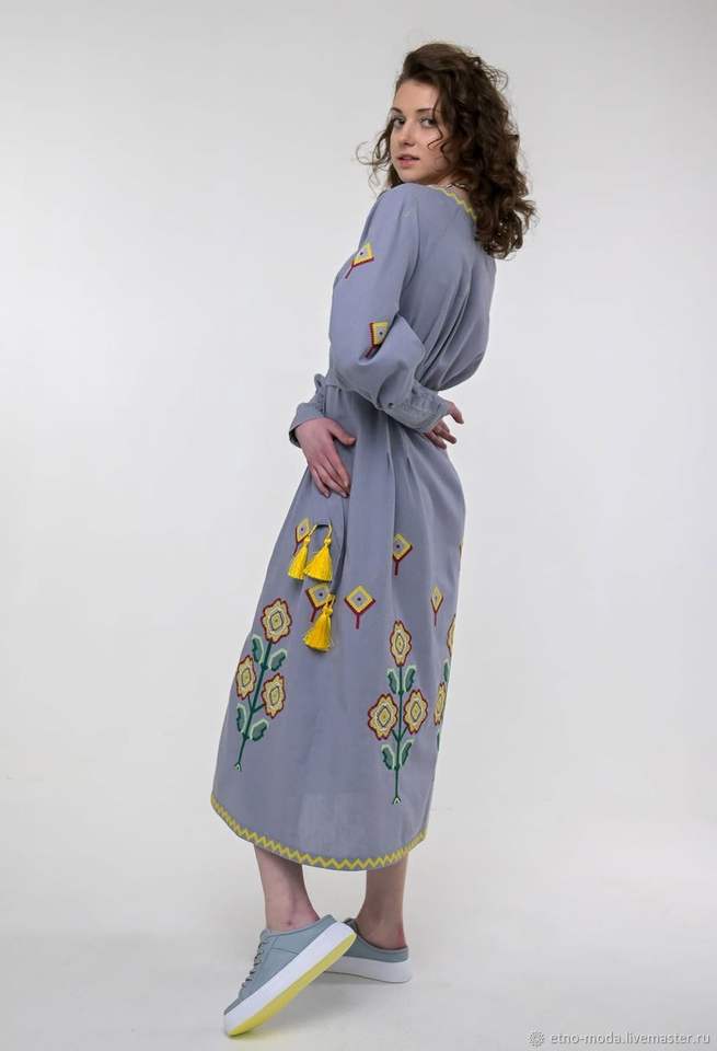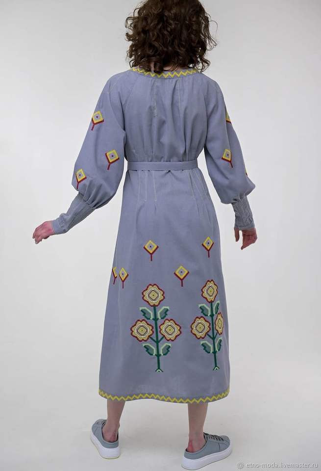 Women's Embroidered Cotton Maxi Dress Long Sleeve Casual Beach Dress with Natural Waistline Woven and Digital Printing