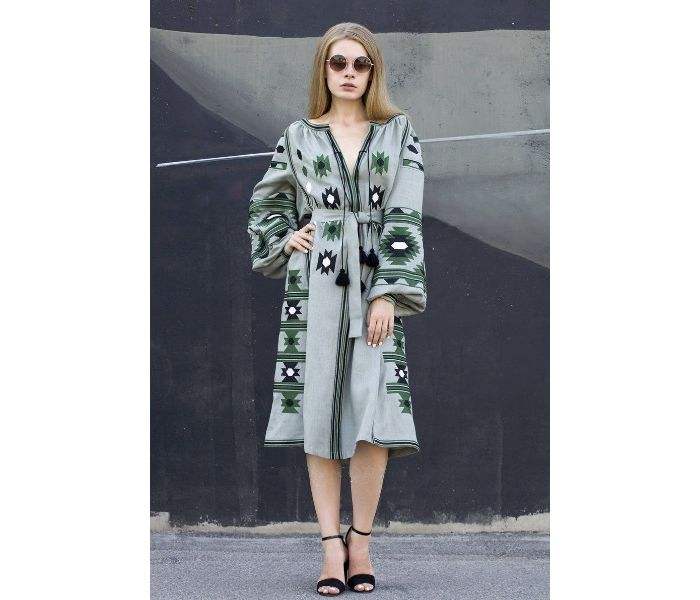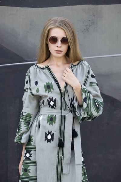 Women's Embroidered Ethnic Dress with Balloon Sleeves Floral Pattern Floral Woven Waist Belt Washable Long Sleeves Ukraine Style