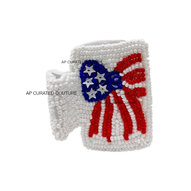 Women's Embroidered Fabric & Beaded Hair Claw Clips with Colorful Glass Beads Handmade Custom Design Fashion At Wholesale