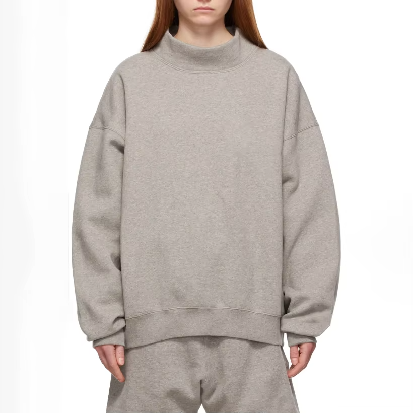 Women's Embroidered French Cotton Terry Sweatshirt Oversized Mock Neck Pullover Plain Grey Breathable Casual for Autumn Winter