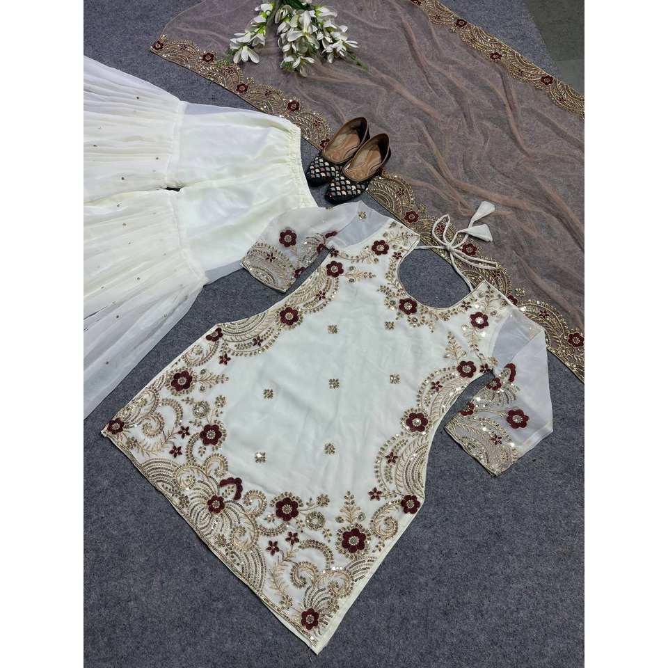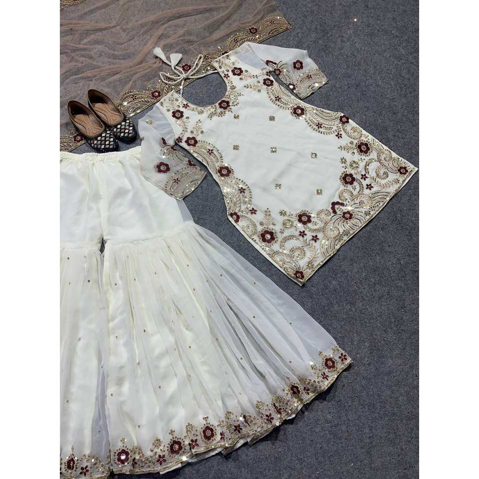 Women's Embroidered Sharara Top and Dupatta for Party Wear