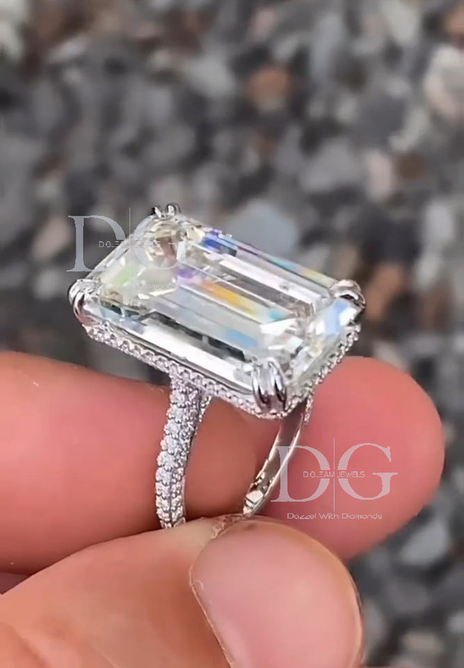 Women's Emerald Cut Lab Grown Diamond Ring Comfort Fit Engagement Wedding Band Claw Prongs Handmade for Her-IGI Parties