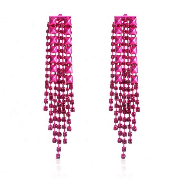 Women's European American Natural Stone Rose Red Tassel Trendy High-end Fashionable Elegant Long Silver Needle Earrings Party