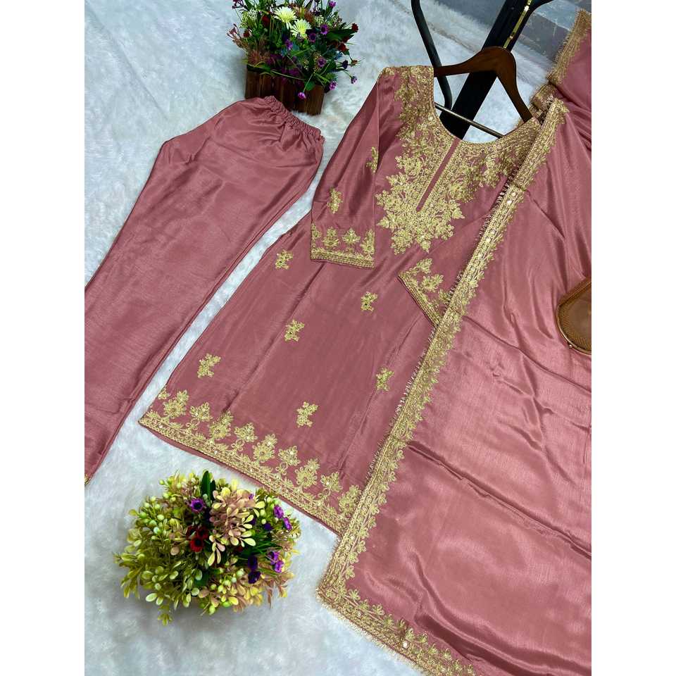 Women's Fancy Suit Set with Embroidery Sequence Work Lace Border