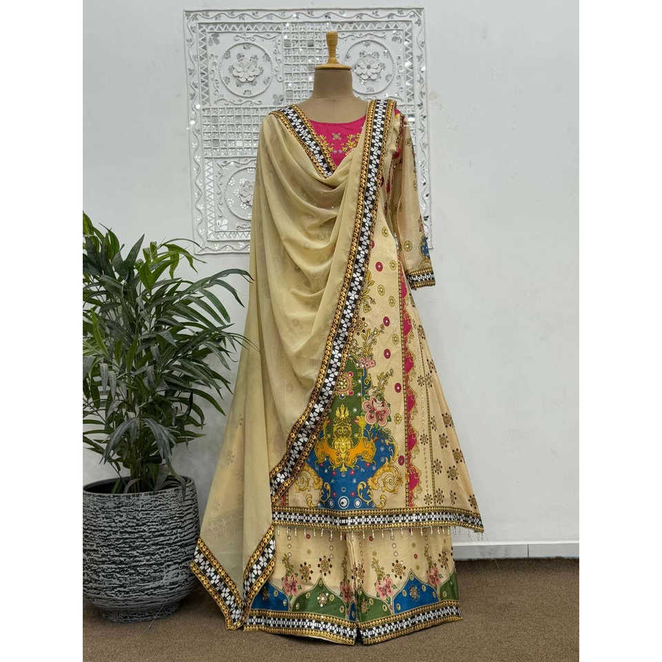 Women's Fancy Suit Set with Beautiful Digital Print and Real Mirror Hand Work