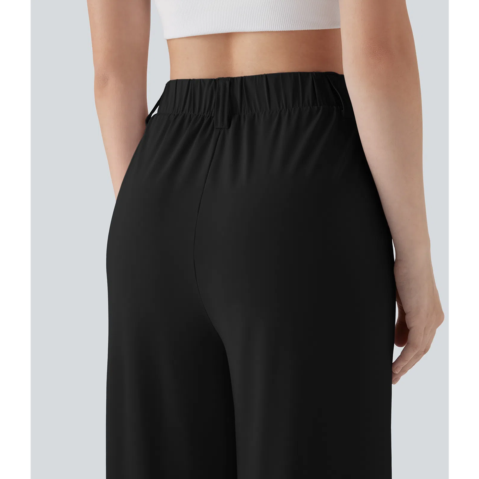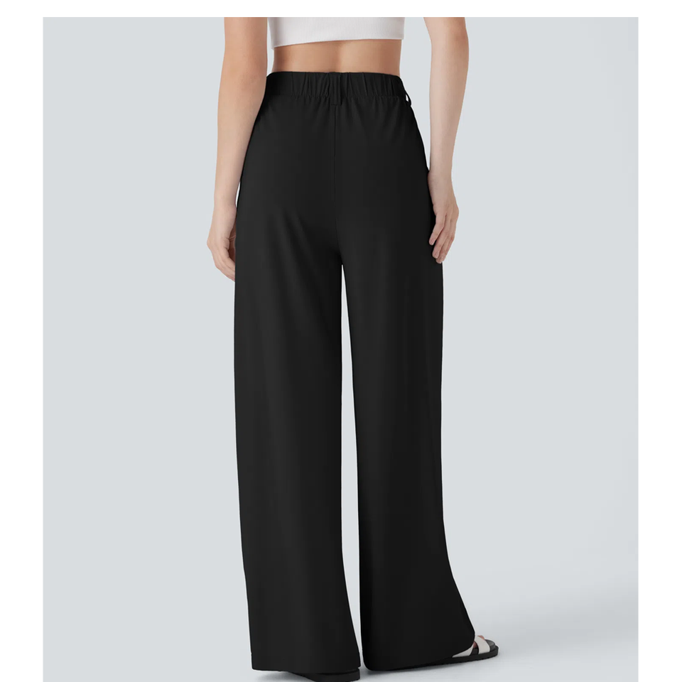 Women's Fashion Active Wear Wide Leg Pants High Waist Baggy Trousers Lace Bow Decoration Office Lady Casual Style for Summer