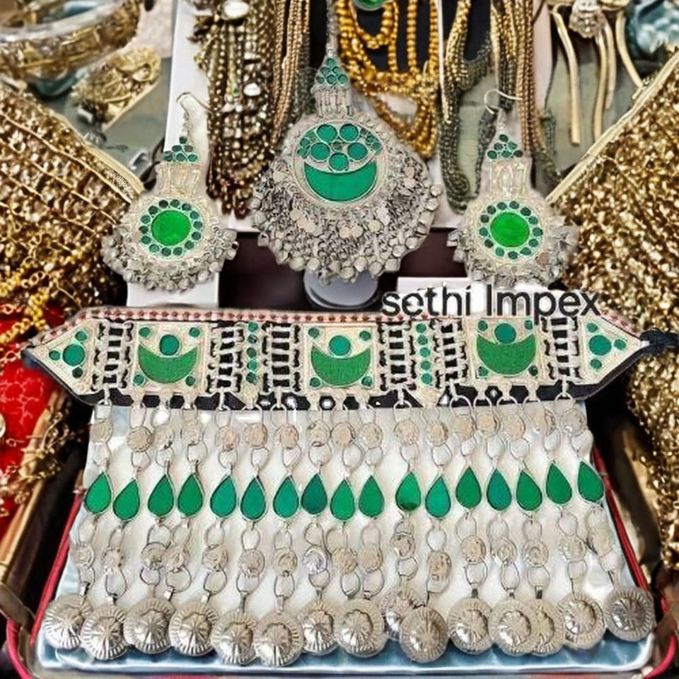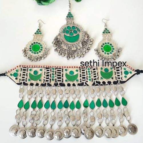 Women's Fashion Afghan Kuchi Vintage Zircon Jewelry Sets Antique Gold Plated Alloy Lightweight Breathable Necklace Earrings Set