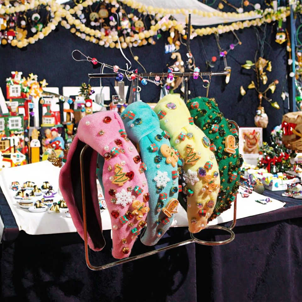 Women's Fashion Christmas Headband Candy Gingerbread Pearl Rhinestone Decoration Flannelette Knotted Hair Accessories for
