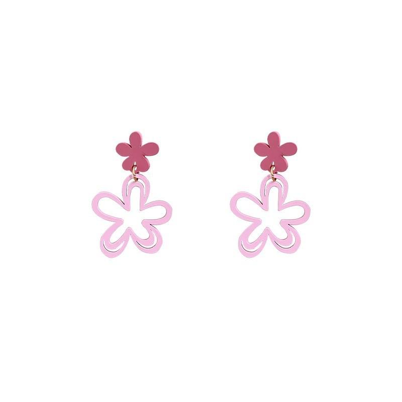 Women's Fashion Dangle Earrings Small Fresh Pink Sweet Flower Joker Temperament Design Heart-shaped Stainless Steel Cute Style
