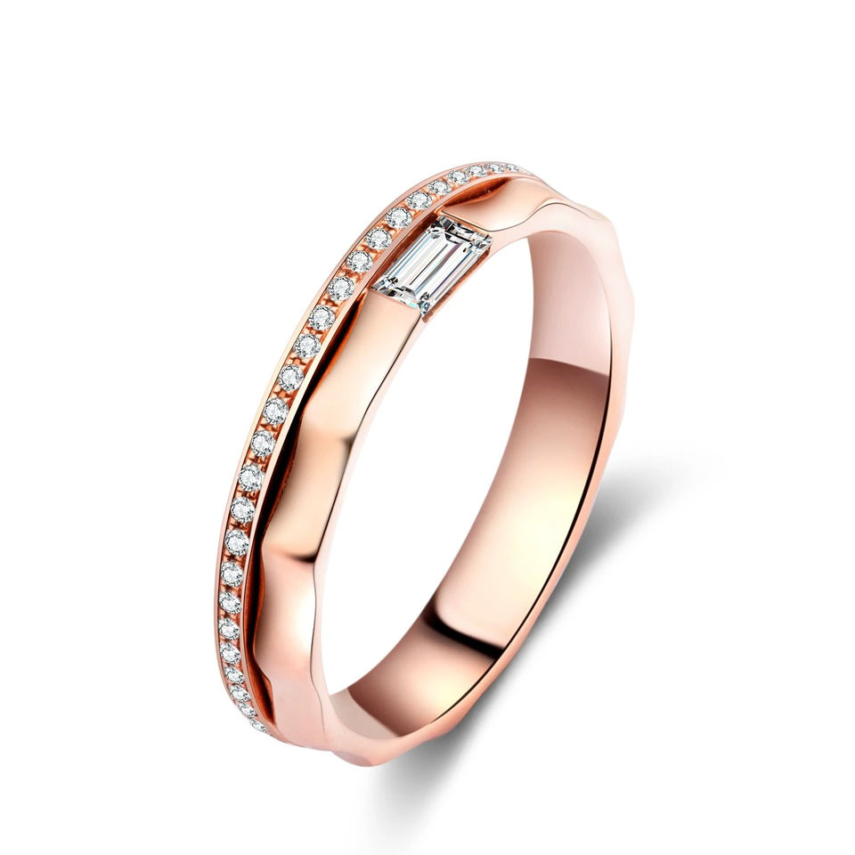 Women's Fashion Design Solid Rose Gold Wedding Ring with Natural Diamond for Engagement