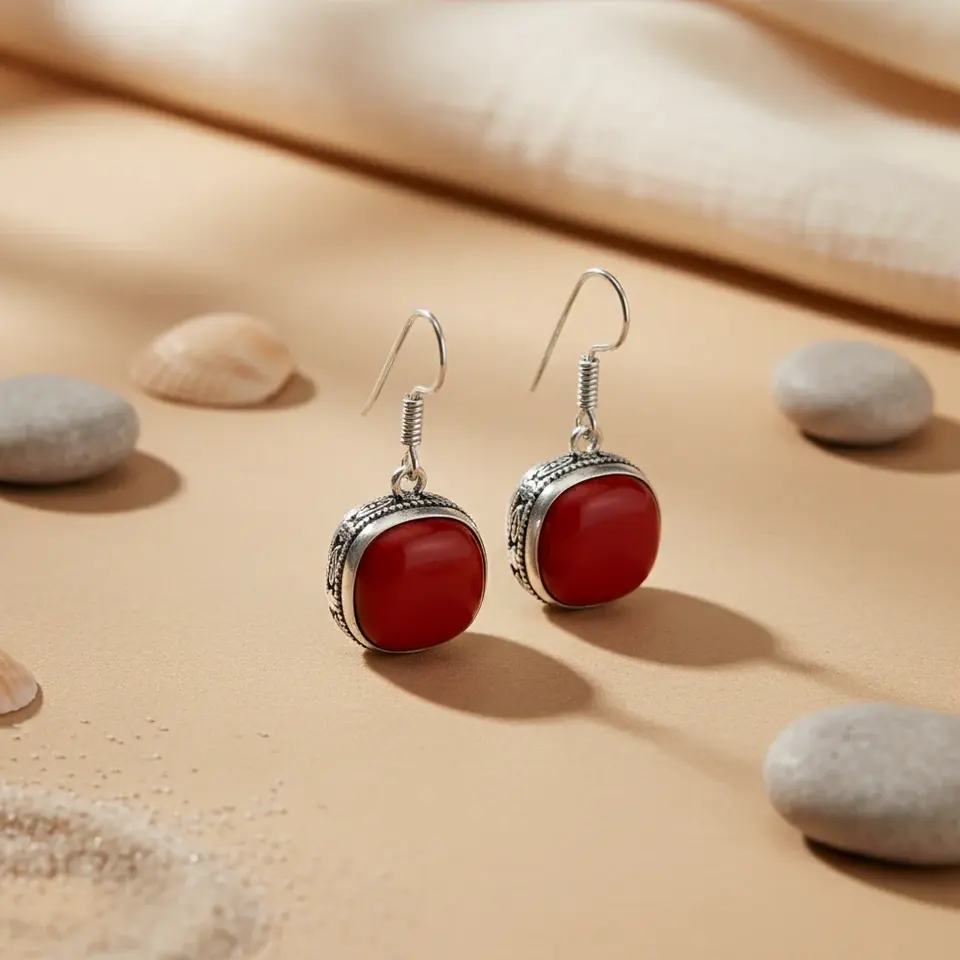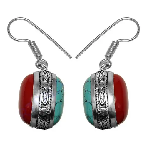 Women's Fashion Drop Earrings with Silver Red Coral Turquoise Elegant Jewelry Design