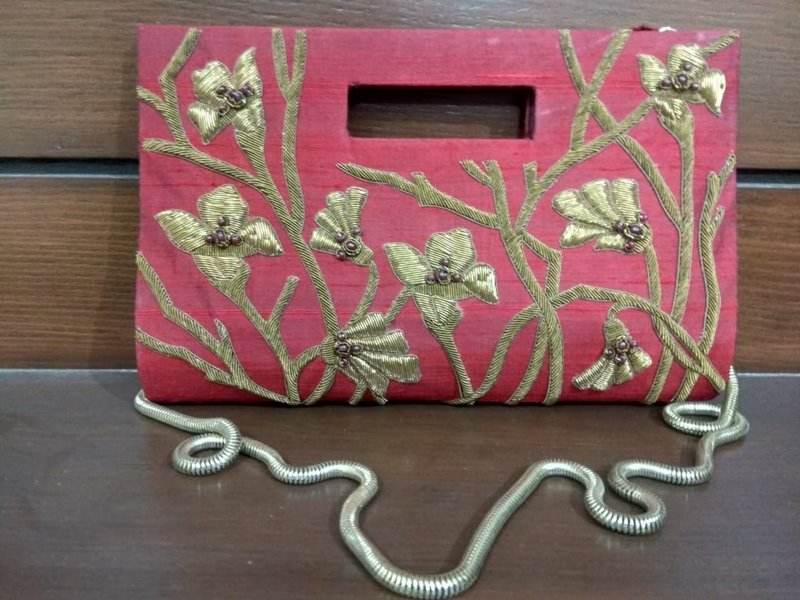 Women's Fashion-Forward Top Zari Embroidery Clutch Purse Latest Design with Semi Gemstones Pearl & Beading Decoration