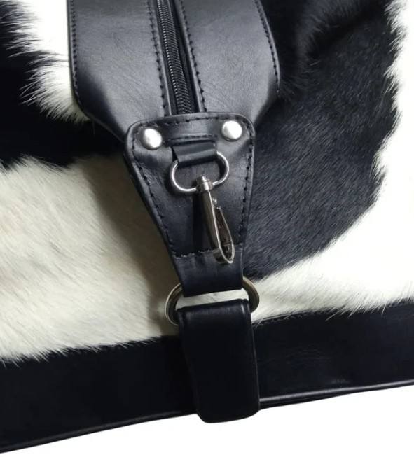 Women's Fashion Genuine Cowhide Leather Crossbody Tote Bag Handmade Hair-On Purse in White & Black Lady Style Bucket Bag