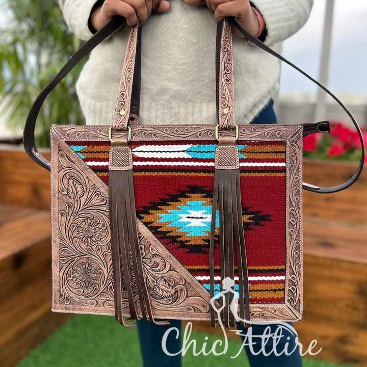 Product name:Handcrafted Tooled Aztec Leather Tote Bag