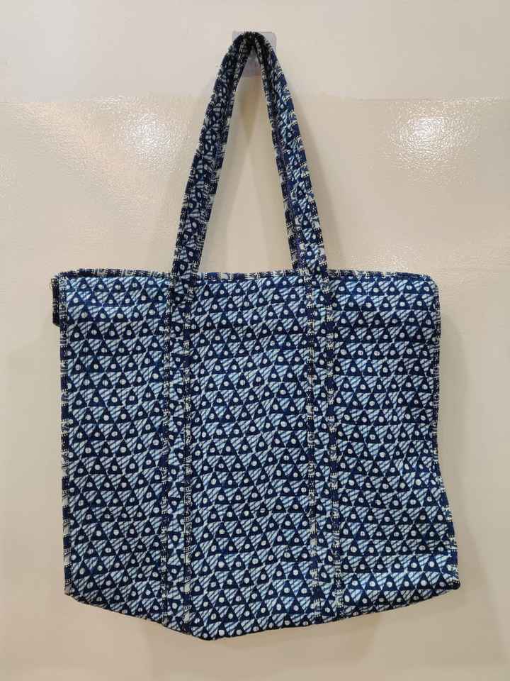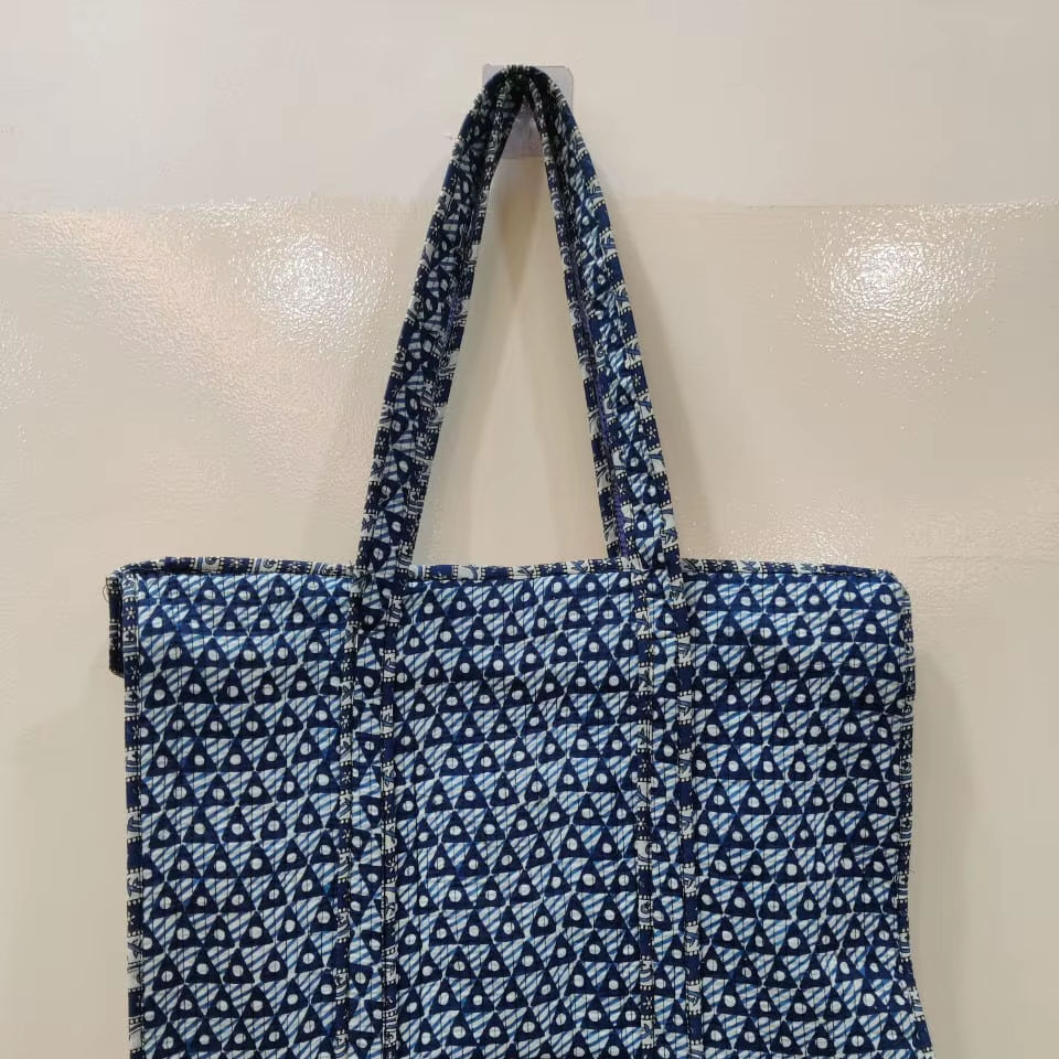 Women's Fashion Large Cotton Tote Bag Quilted with Hand Block Printed Shoulder Strap Load-Bearing Shopping Bag Handmade Tote Bag