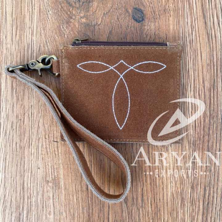 Women's Fashion Luxury Boot Stitch Suede Leather Wristlet Coin Purse Western Genuine Leather Card Holder Mini Keychain Wallets