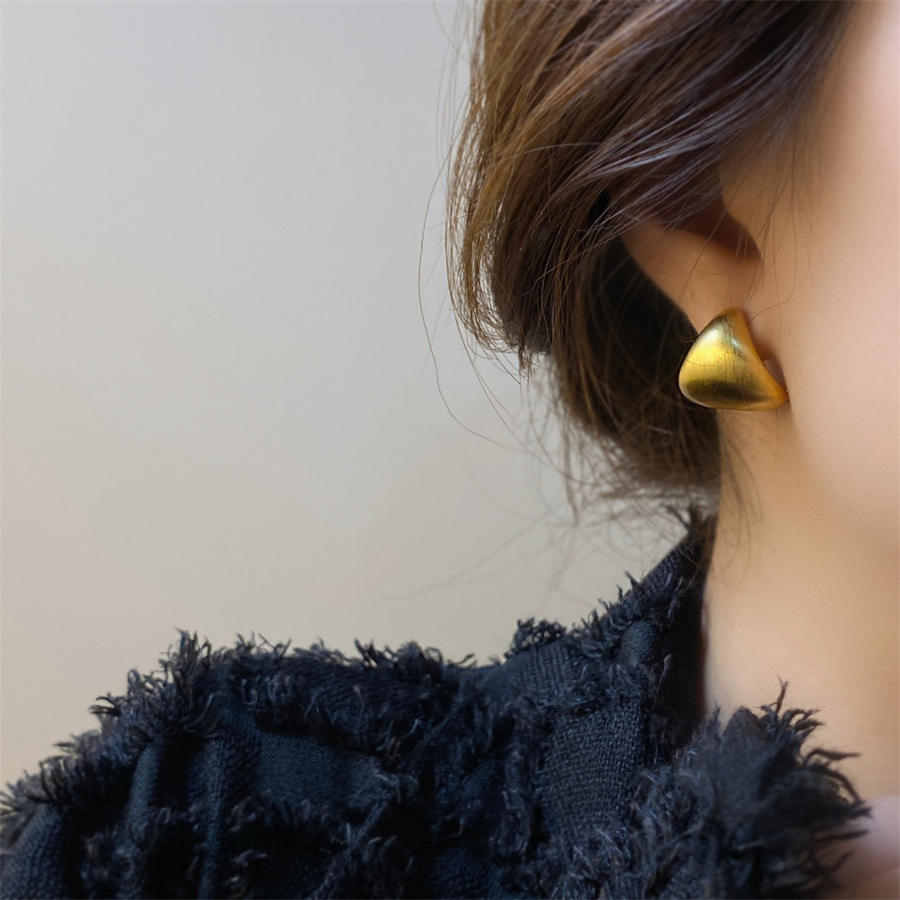 Women's Fashion Metal Brushed Geometric Triangle Earrings New Trend Copper Studs 925 Silver Post Classic Style for Gift