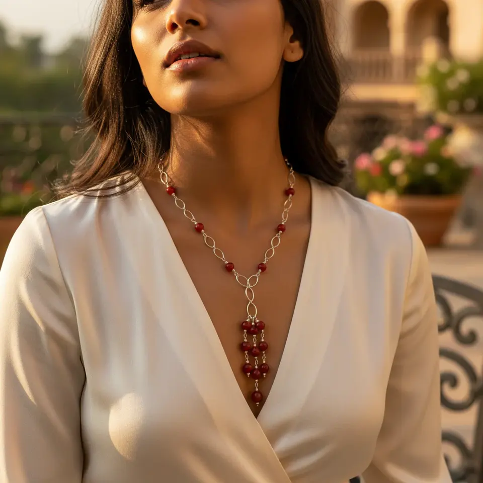 Women's Fashion Necklace Silver Beaded Red Stone Gold Chain Trendy Religious for Parties Gifts Brass Jade Featuring Pearls