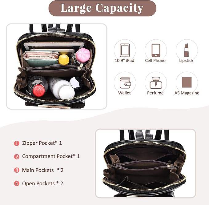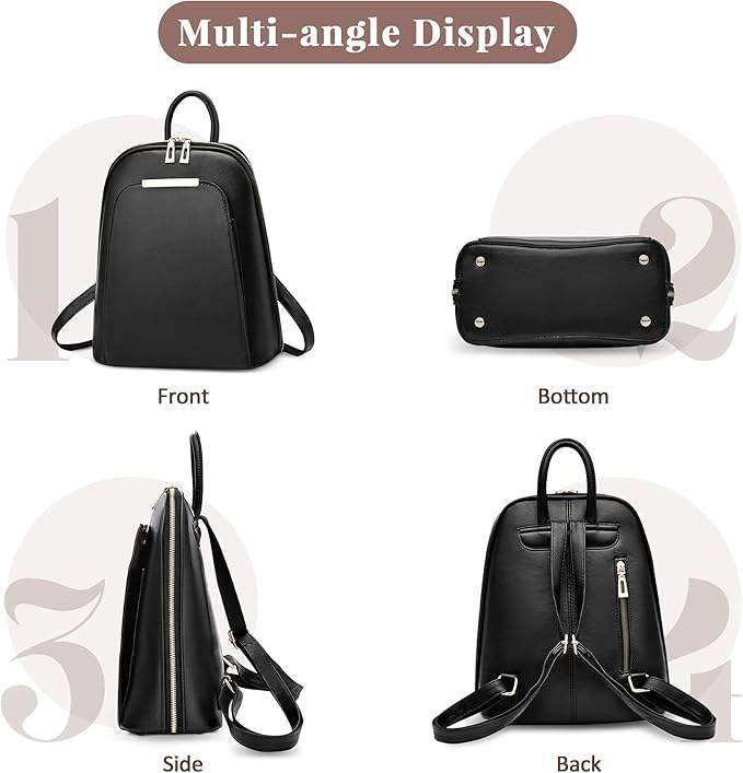 Women's Fashion School Travel City Backpack Lightweight Waterproof PU Leather with Nylon Lining Softback