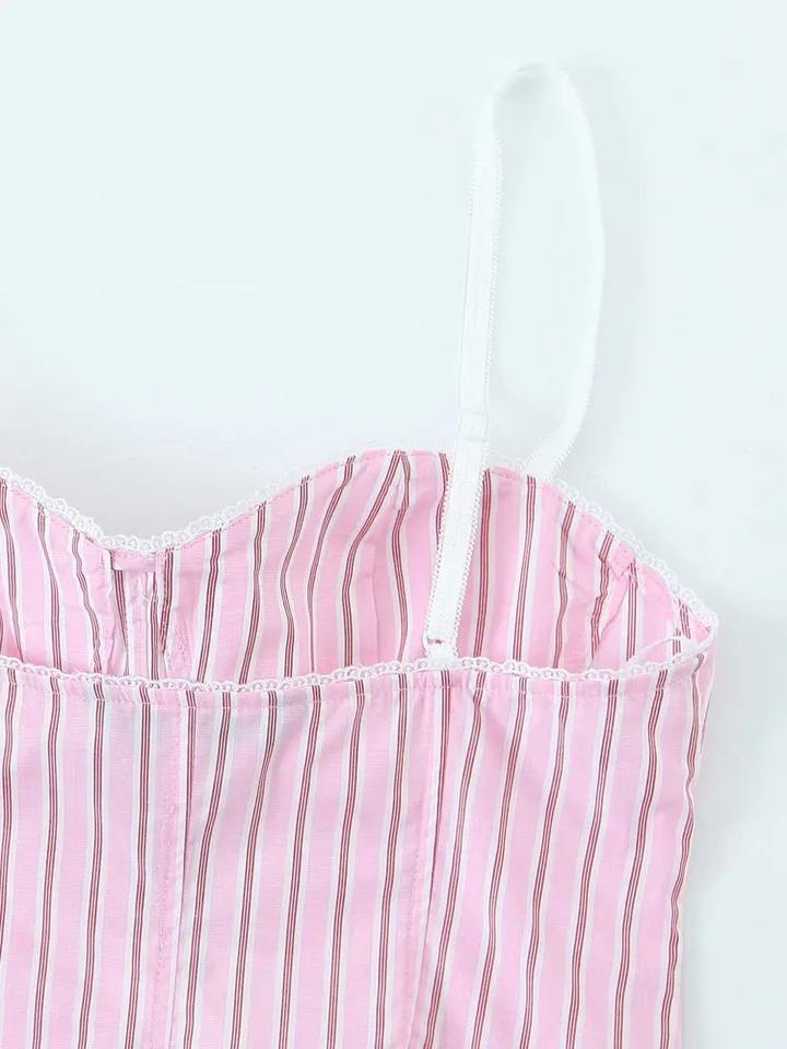 Women's Fashion Striped Peplum Tank Top Sweetheart Neck Thin Adjustable Straps Camisole Female Casual Wear