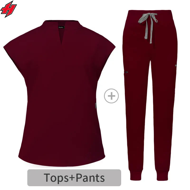 Women's Fashion V-Neck Nurse Doctor Uniform Scrubs Sets Custom Logo Wholesale Jogger Suit Knitted Fabric