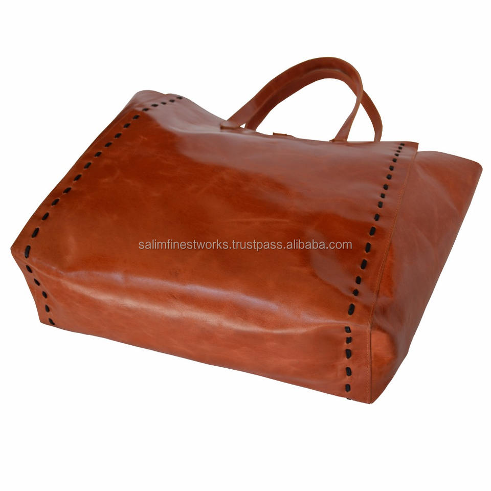 Women's Fashion Vintage Genuine Leather Pure Brown Tote Shopping Handbag Ladies Shoulder Bag Fashion Tote Messenger Shopping Bag