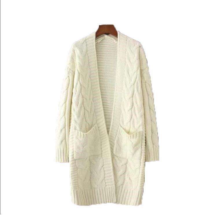 Women's Fashion Winter Autumn Front Open Sweater Cardigan Long Knitted Coat Ladies for Wholesale