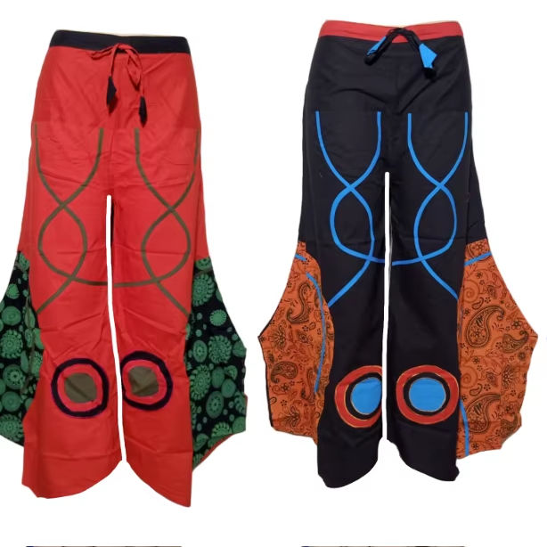 Women's Fashionable Acid Wash Cotton Breathable Eco-Friendly Elastic Waist Hip Hop Style Patchwork Rainbow Summer Trouser