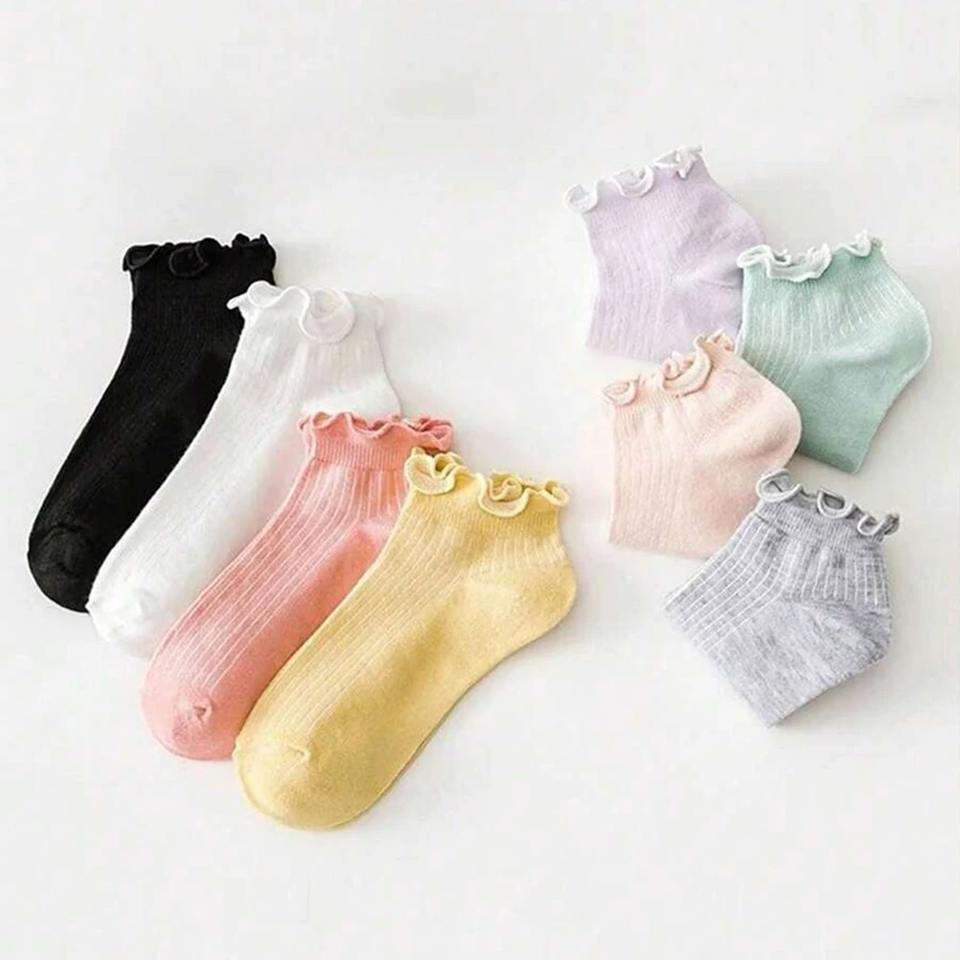 Women's Fashionable Casual Short Socks Comfortable Breathable Soft Pleated Details with Body Logo for Daily Usage