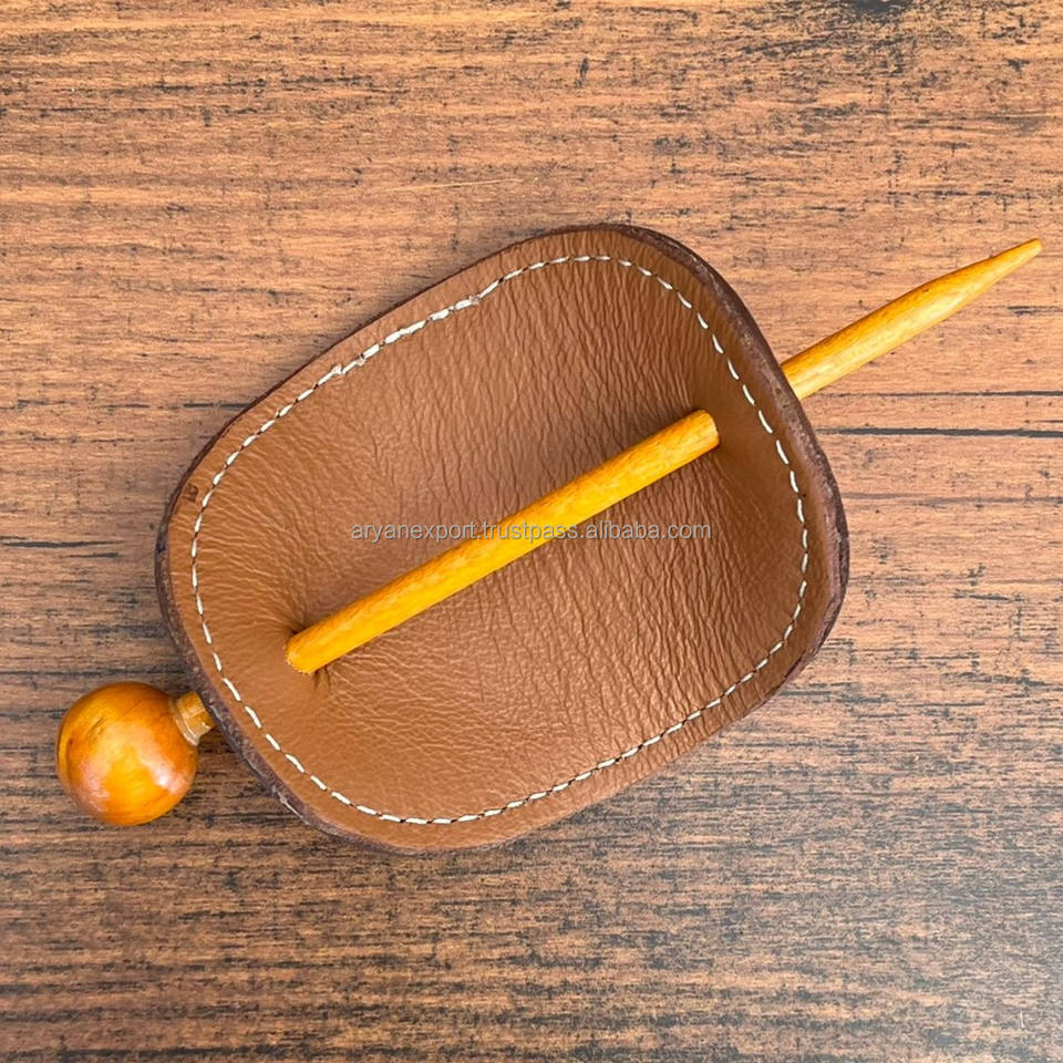Women's Fashionable Hand Tooled Leather Stick Barrette With Wooden Stick High Quality Genuine Leather Hair Barrette Hair Slide