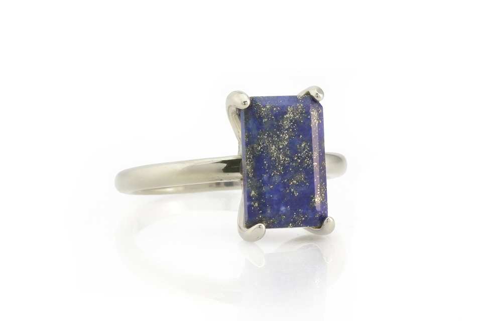 Women's Fashionable Jewelry Solid 925 Sterling Silver 18K Gold Plated Natural Lapis Rectangle Shape Gemstone Rings Fine Jewelry