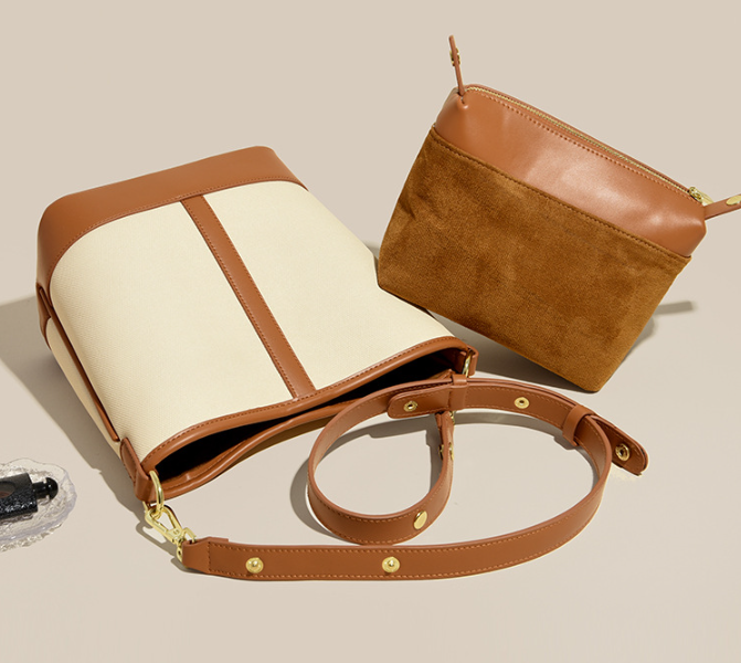 Women's Fashionable Large Capacity Single Shoulder Crossbody Bucket Bag Polyester Waterproof Zipper Closure