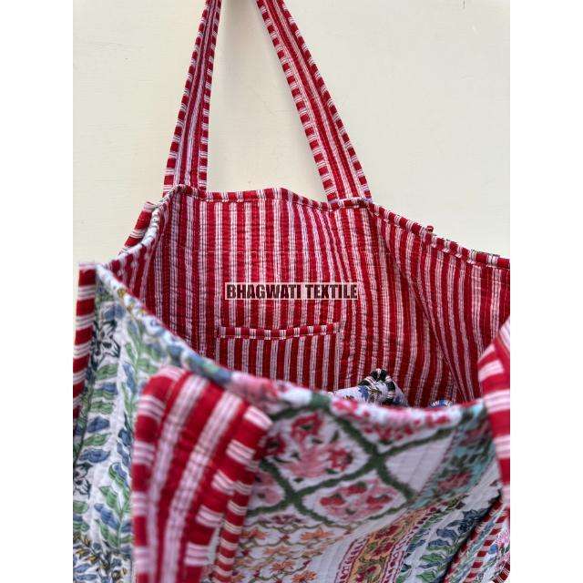 Women's Fashionable Large Floral Pattern Quilted Tote Bag Multicolor Cotton Beach Shoulder Handbag Custom Design Ladies
