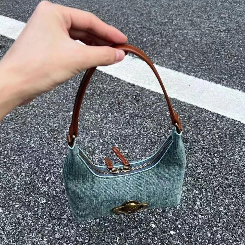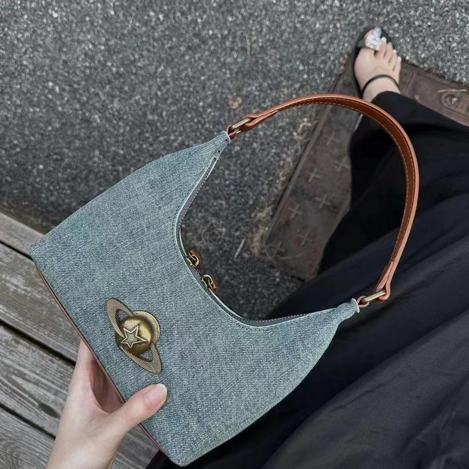 Women's Fashionable Single Handle Denim Shoulder Bag Zippered Portable Handbag Design Wandering Planet Niche Cowboy All Seasons