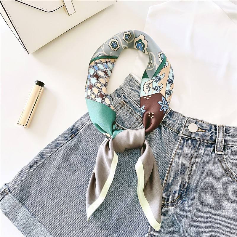 Women's Fashionable Stylish Satin Scarf Versatile Small Square Neck Warmer for Spring and Summer 1PC