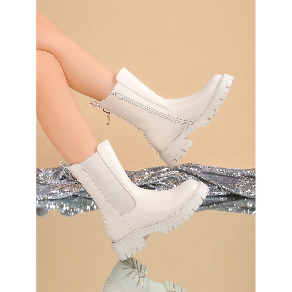 Women's Fashionable and Versatile Short for Martin Boots Thick-Soled Leather for Heightened Comfort