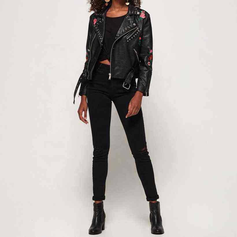 Women's Faux Leather Jackets Zip up Rivets Motorcycle Pink Jacket for Women