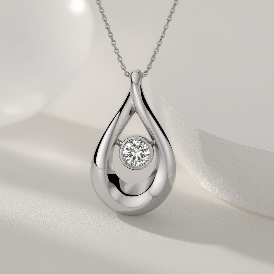 Women's Fine Jewelry White Gold Pendant Natural Stone Minimalist Link Chain VVS1 Clarity GIA Certified Ethical Sustainable