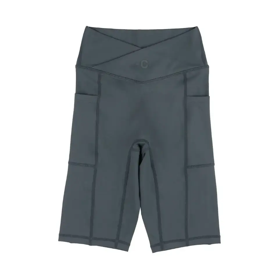 Women's Fitness Biker Shorts High Waist Seamed Stretch 100% Nylon with Cross Waistband and Elastic Waist for Yoga Gym Running