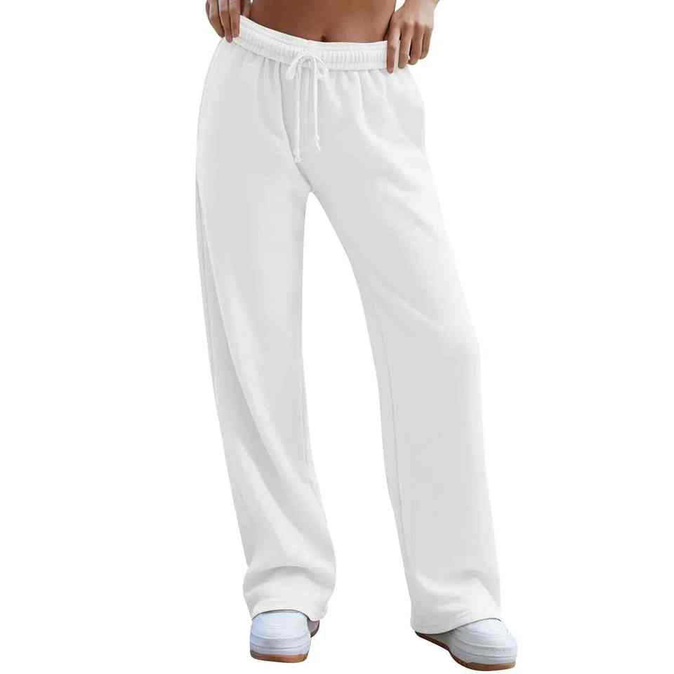 Women's Fleece Lined Lace Loose Fit Sporty Casual Wide Leg Sweatpants Autumn Winter New Arrival Cross Border Wish Fashion
