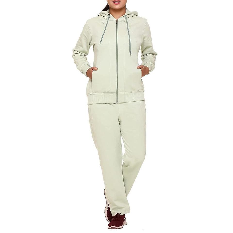 Women's Fleece Tracksuit 2 Pieces Sets Pullover Hoodie 100% Cotton Suit Winter Warm Pullover Hoodie and Jogger Set for Women