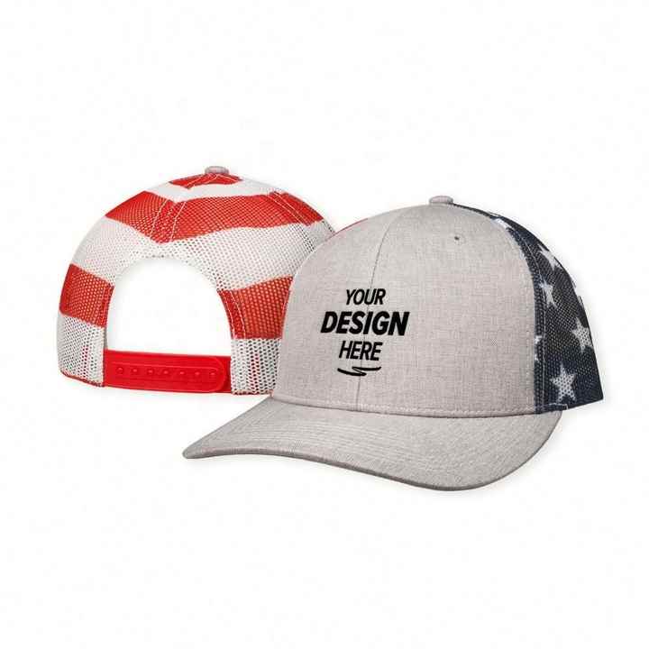 Women's Floral Mesh 5-Panel Baseball Cap Puff Printed USA Banner Hat Common Fabric Truckers Hat