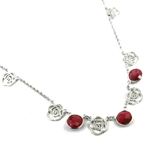 Women's Floral Necklace with 925 Silver Ruby Rose Rhodium Plated 14K Gold White/Diamond/Zircon Stones Trendy Vintage Design