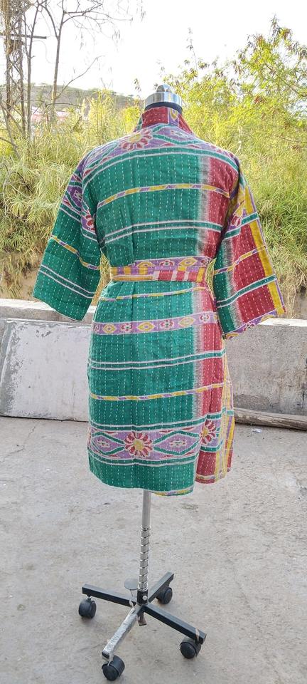 Women's Floral Pattern Cotton Kantha Quilt Jacket Long Kimono Front Open-for Spring Spa Bath Great Gift Idea for Summer