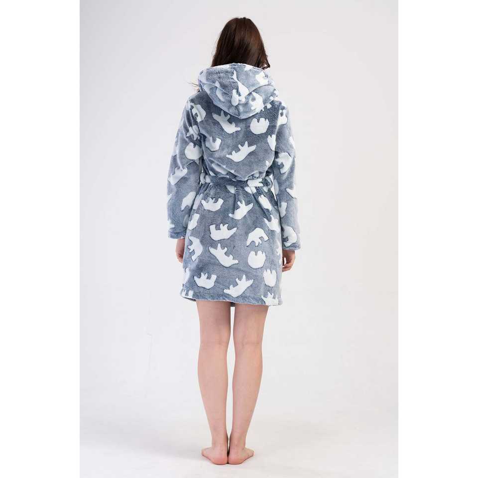 Women's Floral Print Long-Sleeve Robe Elastic Waist Hood Short Pockets Customizable Breathable Bridal Dressing Gown for Night